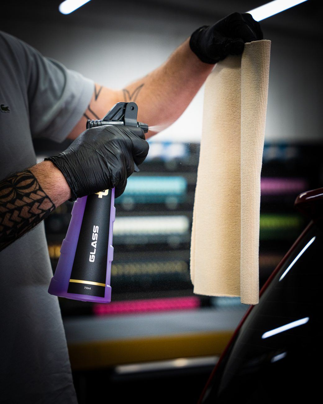 Ne procédez pas à une contamination croisée de plusieurs tâches avec la même serviette, par exemple en nettoyant le cuir puis en passant directement au verre avec la même serviette. L’utilisation des mêmes serviettes pour les deux tâches sera la cause principale des traces sur le verre.